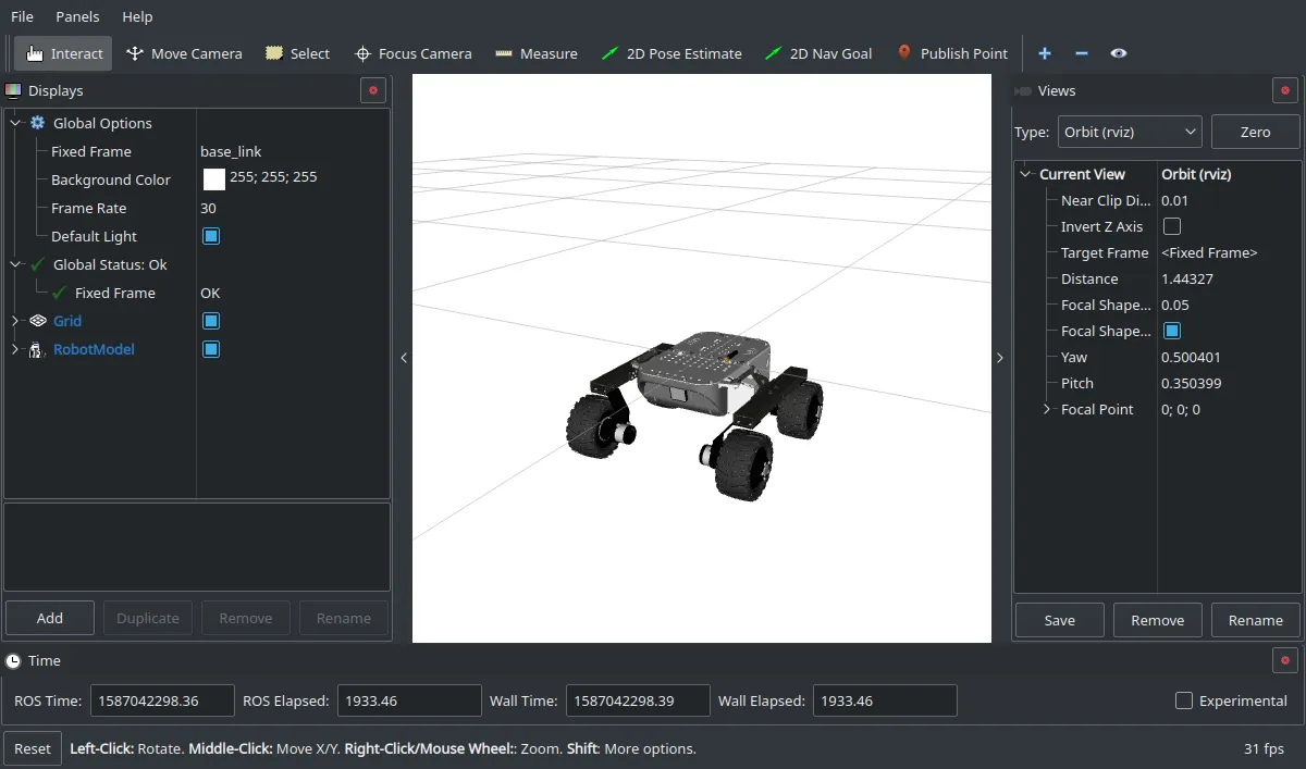Now, to visualize the model in RViz, just type: